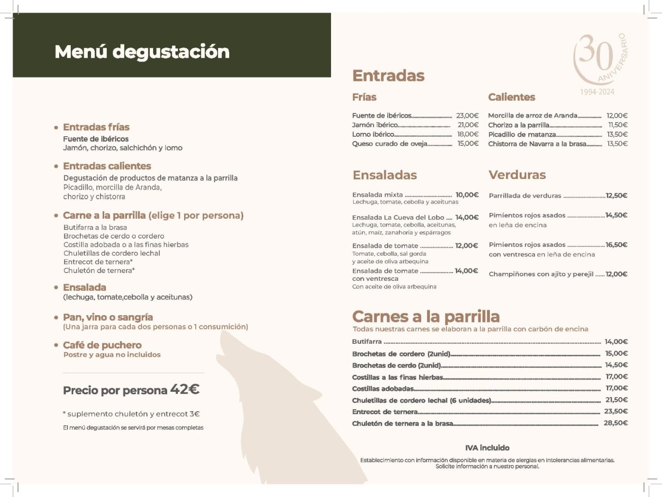 Nuestra carta además de una amplia selección de carnes a la parrilla y productos de matanza incluye una cuidada variedad de ensaladas, así como diversas opciones para vegetarianos, parrillada de verduras, pimientos asados, champiñones al ajillo, etc.